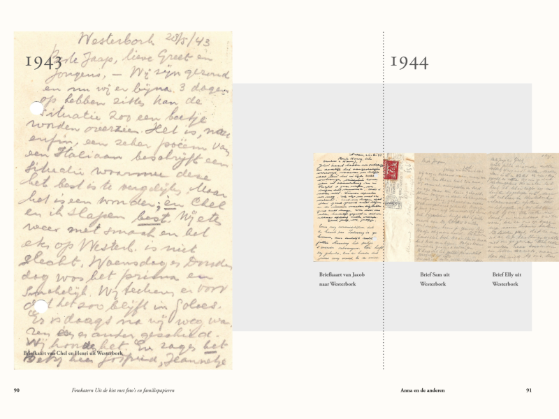 Zo begint het boekje Anna en de anderen van Inge Polak. In 28 hoofdstukjes schetst zij het verhaal van haar familie en in het bijzonder van haar oudtante Anna. Tijdens het vormgeven kreeg ik de beschikking over een groot deel van de inhoud van de kist met foto’s en familiepapieren. Deze papieren bestonden uit persoonlijke brieven, kaarten, kattebelletjes, advertenties, divers drukwerk en officiële brieven van verschillende (overheids)instanties. Het was bijzonder om hierin te grasduinen voor dit indringende verhaal.