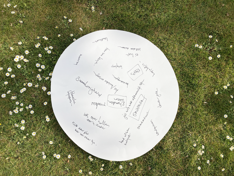 Een van die buurtgenoten is Ans en zij heeft zich bij ons project aangesloten. Met z’n drieën hebben we verder gepraat over burenhulp. Hoe ziet dat eruit? Welke ervaringen hebben we zelf? Dat liep uiteen van babysitten tot kleine huis- en tuinklusjes, van het verzorgen van huisdieren en kamerplanten tot af en toe een boodschap voor iemand doen. Zonder de deur bij elkaar plat te lopen (we zijn alle drie best op onze privacy gesteld) zijn af en toe een praatje of een kop koffie fijne momenten. We kwamen erachter dat elkaar helpen en troost bieden in moeilijke tijden dicht bij elkaar liggen. Al zoekende vonden we een mooi symbool om dit te verbeelden.