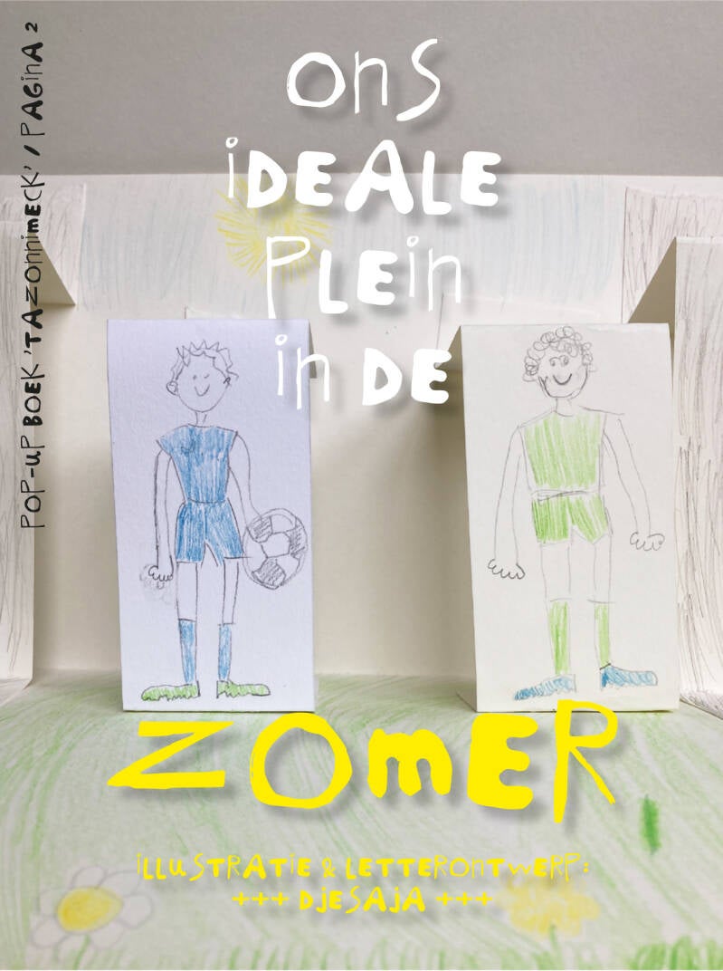 Ondanks de moeilijke klus om een pop up van papier te maken en heel veel afbrekende potloodpunten (gelukkig hadden we een goede puntenslijper en iemand die dat zonder morren deed) ontstond er langzaamaan een echt boek. En deze vier jonge kunstenaars namen niet alleen de illustraties voor hun rekening maar ook de typografie: alle letters van a tot z, de hele cijferreeks én de interpunctie. Deze letter kreeg de naam Tazonnimeck.